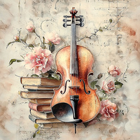 Panel kolory muzyki, różowa gitara i róże wmz26