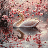 Panel ptak łabędź pływający wśród kwiatów wb135